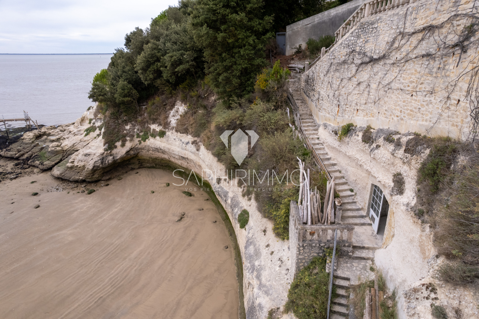 Grotte privative (chemin à flanc de falaise avec accès privatif à la conche)